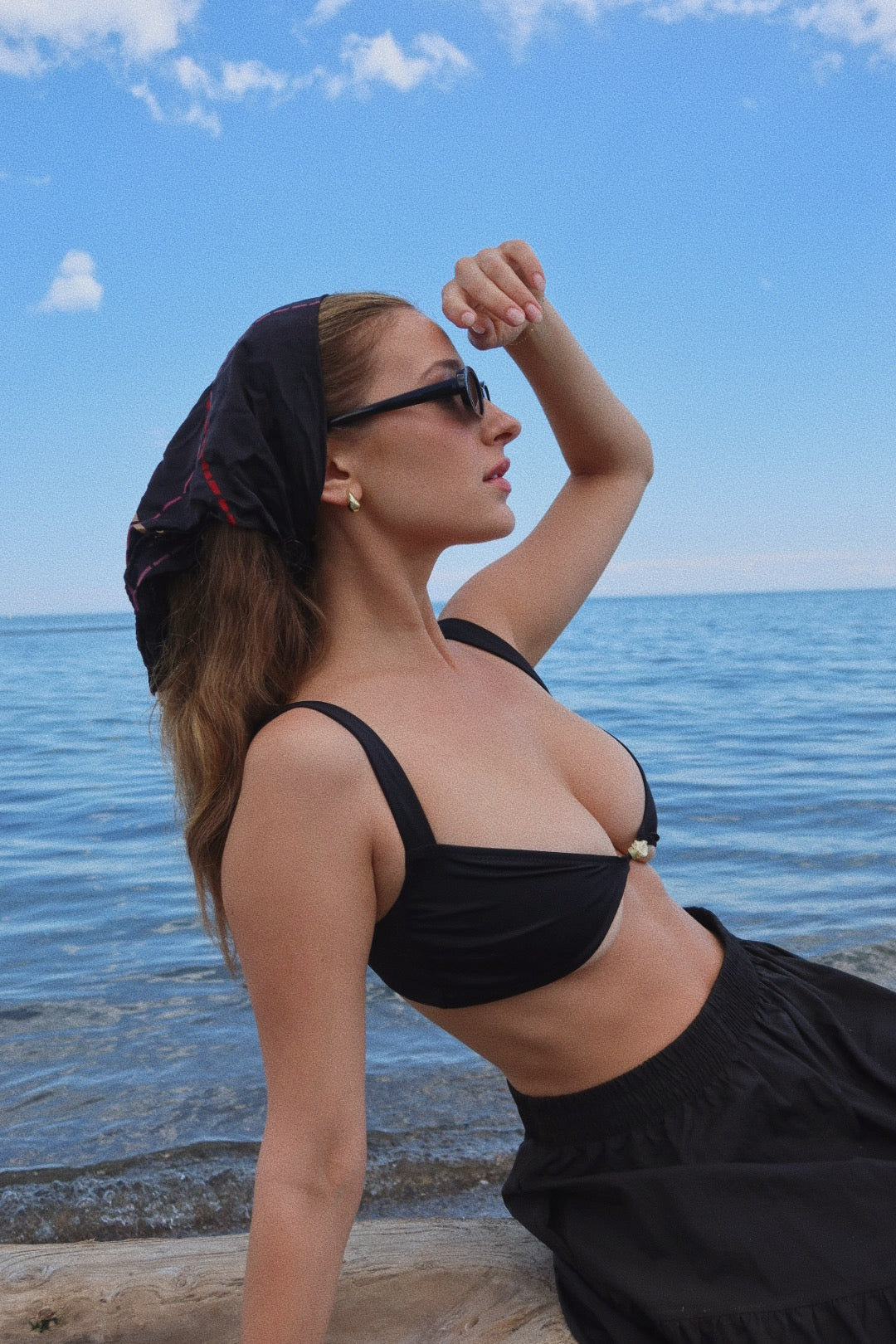 The Fiore top is a balconette style back clasp bra that provides a flattering lift and enhanced shape, ideal for showcasing your natural curves. With its elegant cut, it combines a touch of vintage charm with contemporary fashion by added ruching on the sides and a beautifully crafted white rose detail.