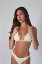 Meet the Charlotte top - a refined triangle cut that offers a timeless silhouette, delicate yet supportive, sculpting the body with understated ease and adjustable ties allows for a custom fit.
